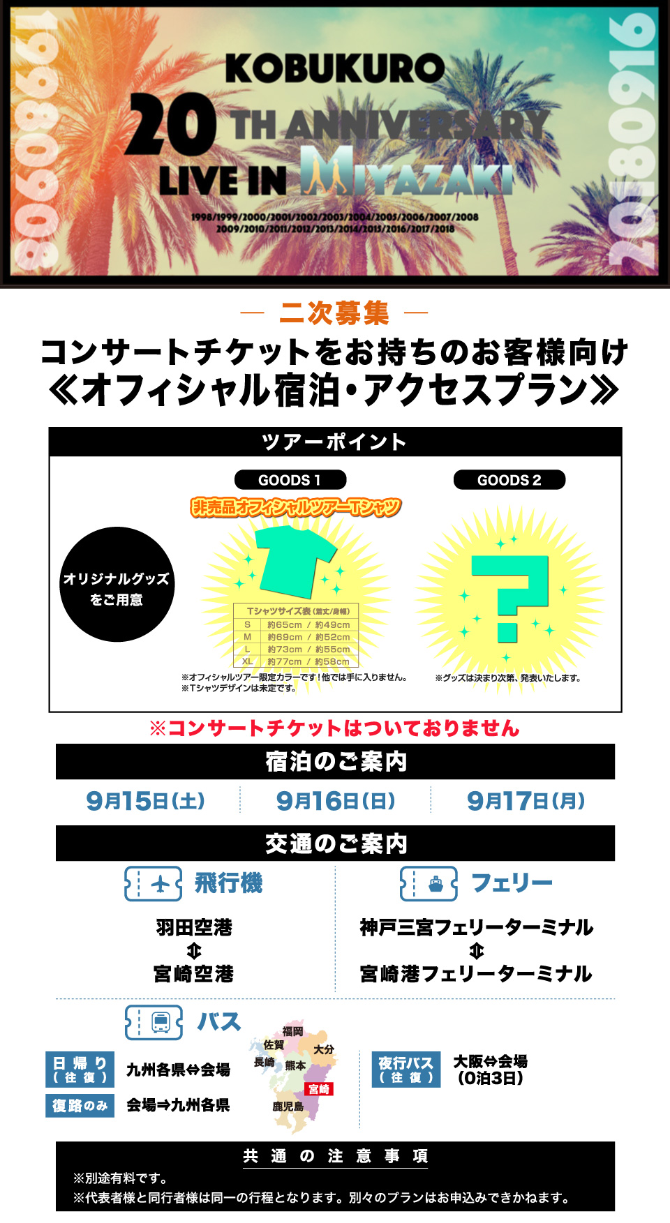 オフィシャル宿泊 アクセスプラン コブクロ結成周年記念ライブ